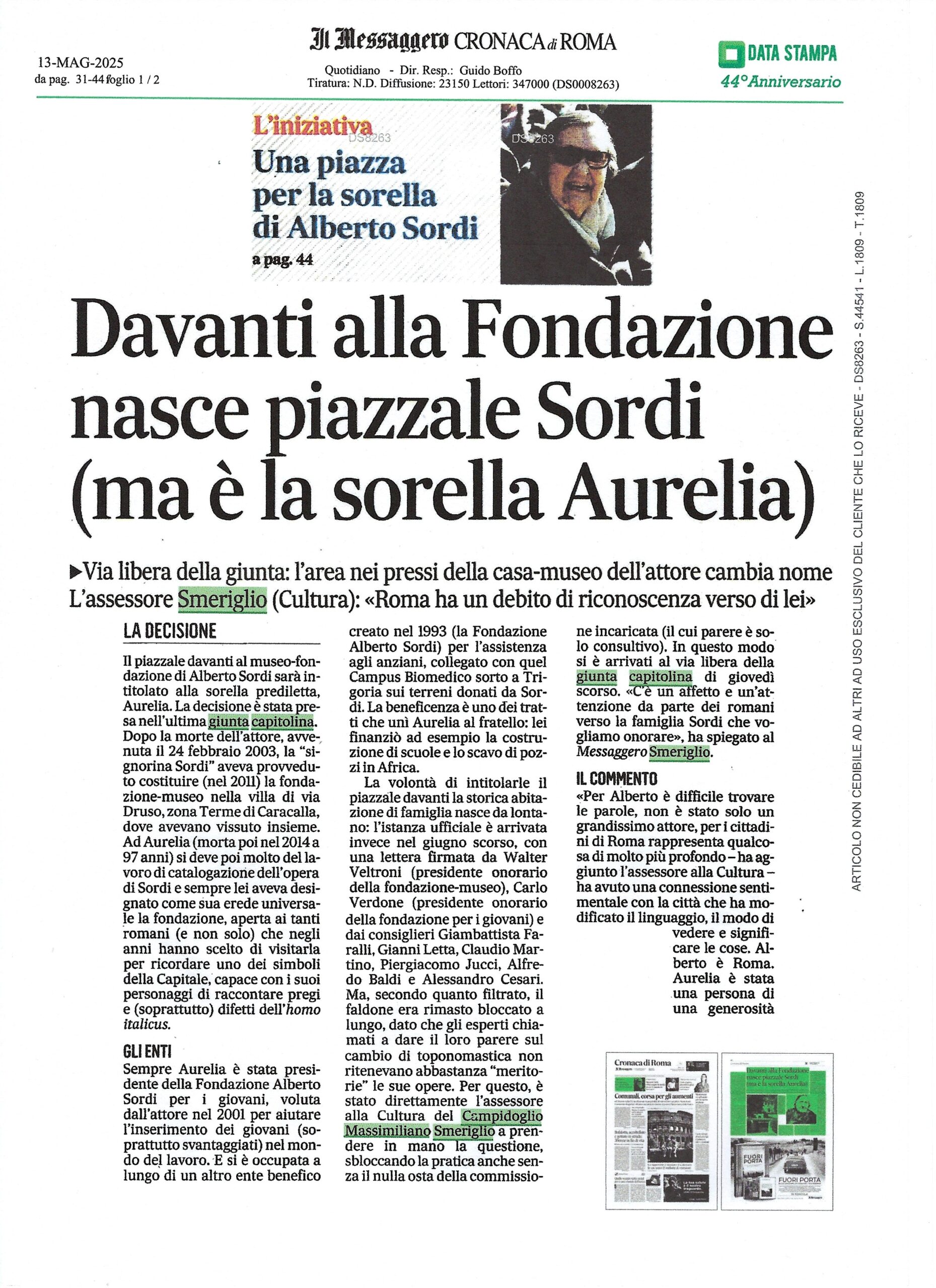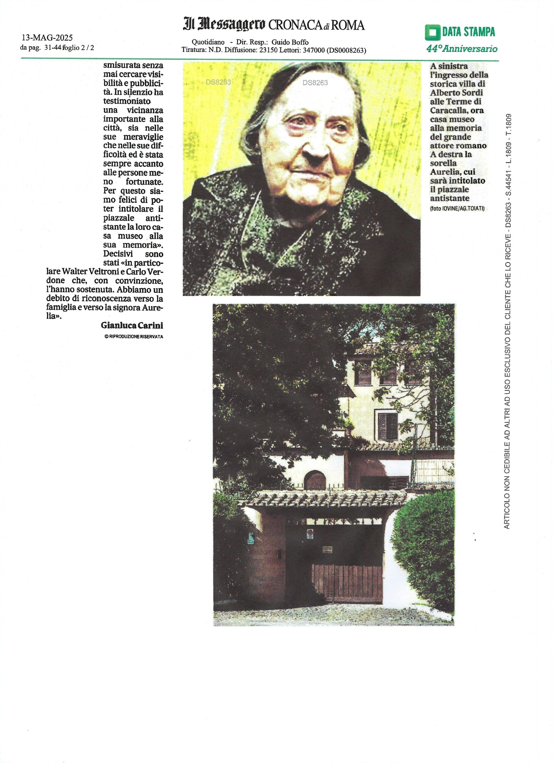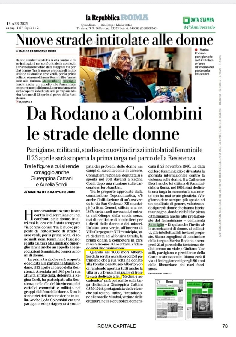 Intitolazione del piazzale antistante la villa ad Aurelia Sordi