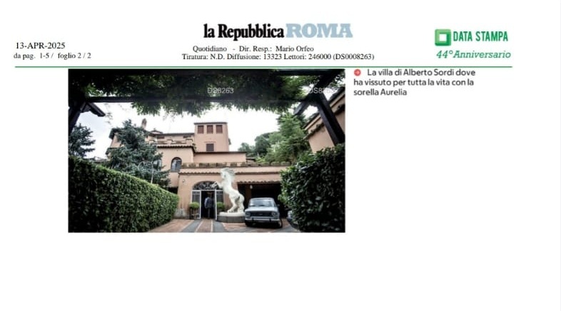 Sarà finalmente intitolato ad Aurelia Sordi il piazzale antistante Villa Sordi